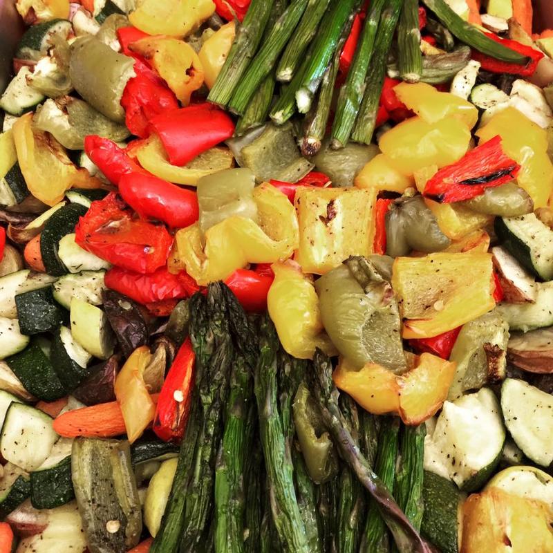 Grilled bell pepper, red onions, zucchini, and yellow squash (surcharge)