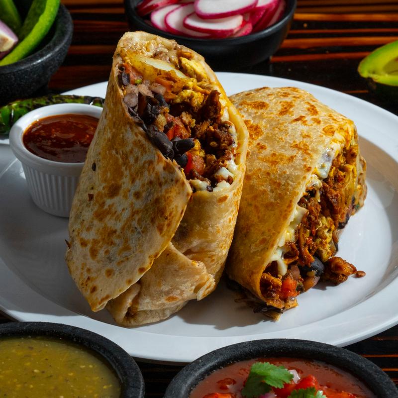 Large 14” inch flour tortilla filled with your favorite choice, fried eggs, pico de gallo and salsa.