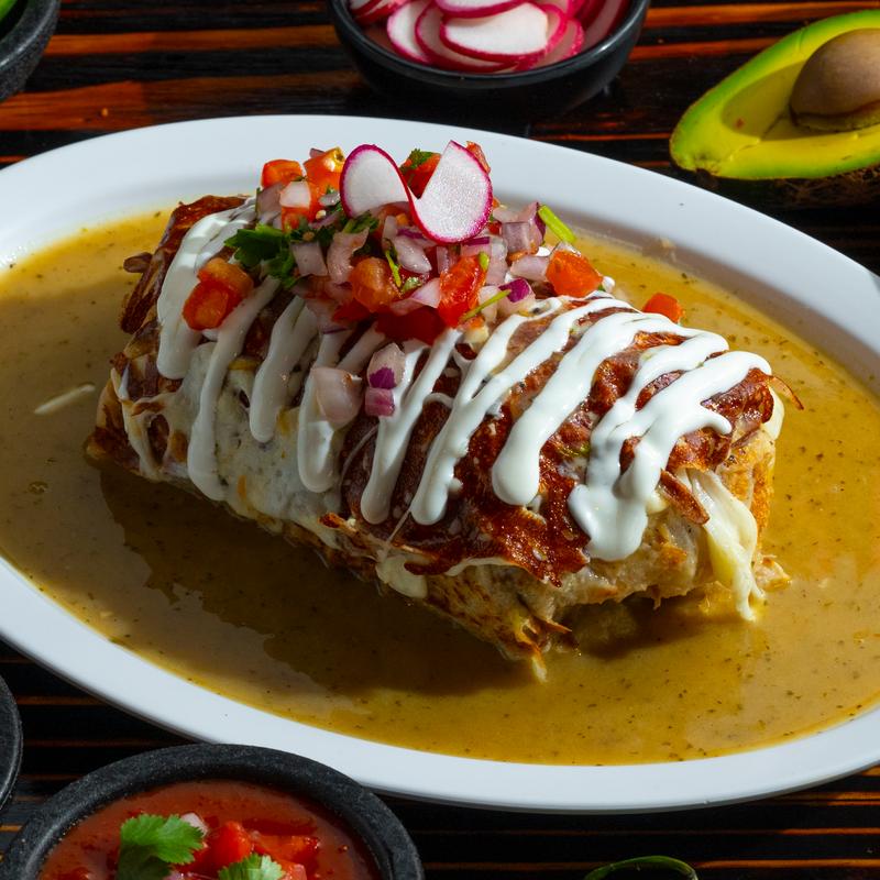 Large 14” flour tortilla filled with cheese, your favorite choice of meat, lettuce, pico de gallo, sour cream, and salsa.